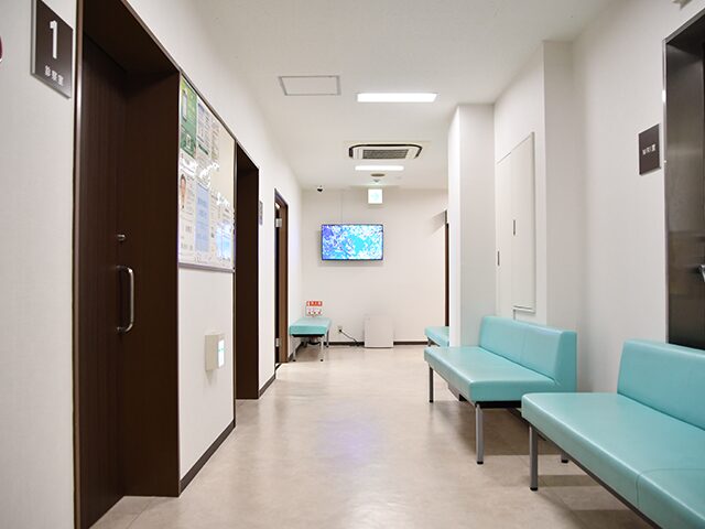 当院では、安心してご来院いただけるよう、快適で清潔な環境づくりを心がけています。バリアフリー設計の院内には、ゆったりとした待合室やプライバシーに配慮した診察室を備え、どの世代の患者さまにも配慮した空間となっています。